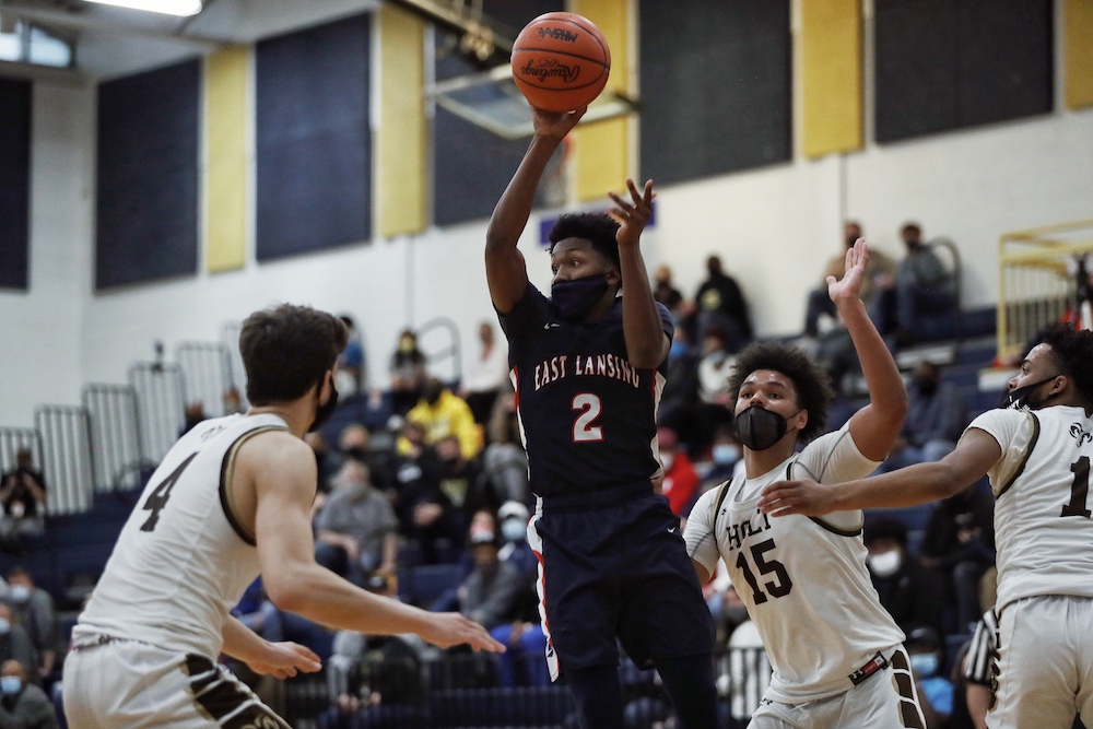 ELHS Trojan Marcus Wourman gets into the heart of the defense against Holt on Tuesday night (Mar. 30, 2021).